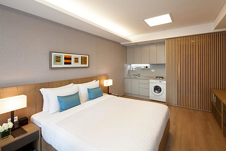 The spacious double room features air conditioning, a washing machine, as well as a private bathroom boasting a bath and a shower. Guests can make meals in the kitchen that features a refrigerator, kitchenware and a microwave. The double room provides a tea and coffee maker, a dining area, a wardrobe, a safe deposit box, as well as a TV with cable channels. The unit has 1 bed.